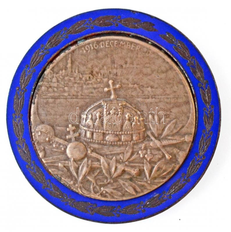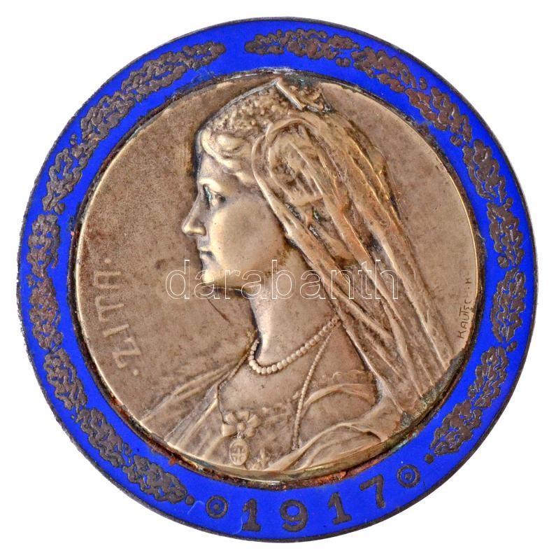 Osztrák-Magyar Monarchia 1917. "Zita / 1916. December 30" koronázási zománcozott, bronzozott Fe plakett, jelzetlen Ag lemezérem rátéttel. Szign.: Katusch H. (90,07g/65mm) T:2 kis korrózió és zománchiba / Austro-Hungarian Monarchy 1917. "Zita / 30 December 1916" enamelled, bronze plated Fe plaque, with Ag plate without hallmark. Sign.: Kautsch H. (90,07g/65mm) C:XF small corrosion and enamel error
