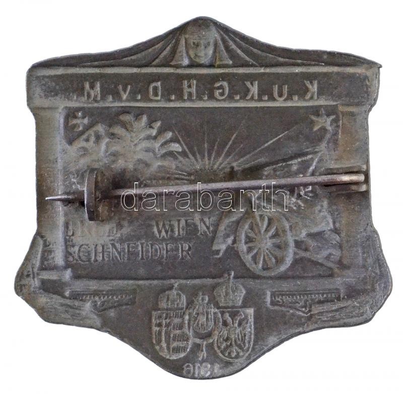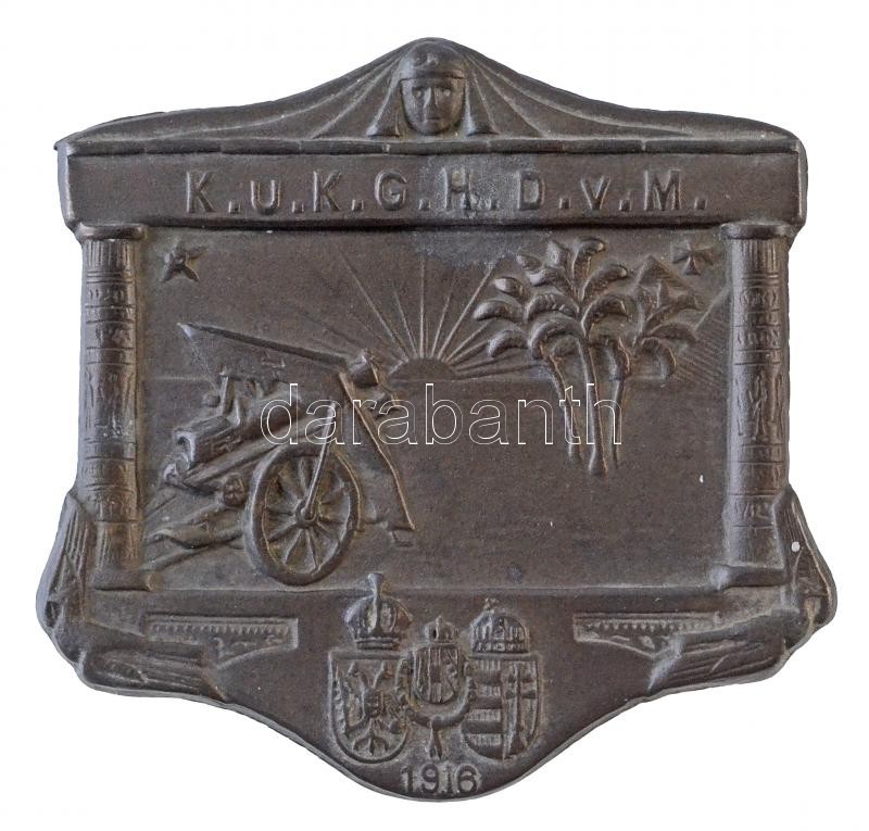 Osztrák-Magyar Monarchia 1916. "K.u.K.G.H.D.v.M. (Császári és Királyi Hegyi Tarack Hadosztály v.M.)" Zn sapkajelvény, Oszmán Birodalom palesztinai területén szolgáló katonáknak (37x38mm) T:1,1-