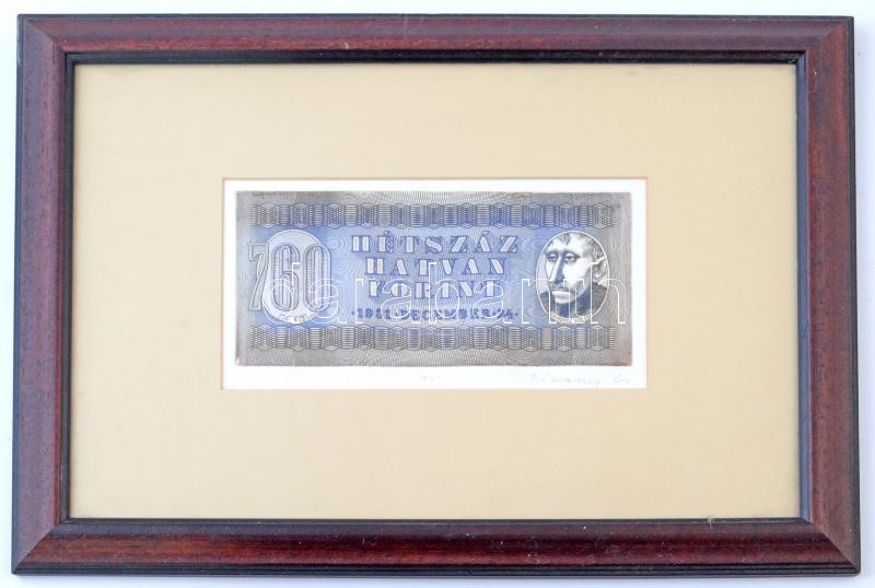 Leírás: 1981. "Hétszáz Hatvan Forint - Savanyú József" Rékassy Csaba (1937-1989) festő, grafikus által tervezett gunyoros bankjegy, üvegezett keretben / Hungary 1980. "Hétszáz Hatvan Forint - Savanyú József (Sevenhundred-sixty Forint - Bitter Joseph)" humorus fantasy banknote designed by Csaba Rékassy (1937-1989) painter, graphic designer in glass frame