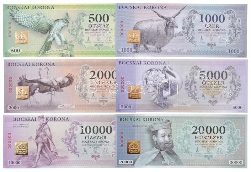 Hajdúnánás 2012. 500K + 1000K + 2000K + 5000K + 10.000K + 20.000K "Bocskai Korona", mindegyik "MINTA" perforációval és "000000" sorszámmal T:I /