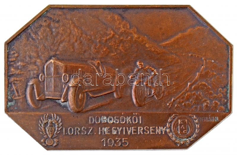 Berán Nándor (1889-1965) 1935. "Dobogókői I. Orsz. Hegyiverseny 1... https://www.darabanth.com/hu/33-Nagyaukcio/33.1/Numizmatika/Sportdijak-es-sport-emlekermek~13843/Beran-Nandor-1889-1965-1935-Dobogokoi-I-Orsz-Hegyiverseny-1935-KAC-Kispesti-Automobil-C~II2136676