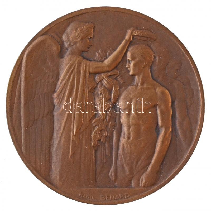 Franciaország 1924. "VIII. Olimpiai Játékok - Párizs" kétoldalas Br emlékérem, eredeti tokban. Szign.: Raoul Bénard (73,29g/55mm) T:1,1- / France 1937. "VIIIe Olympiade Paris 1924" two-sided Br medallion in original case. Sign.: Raoul Bénard (73,29g/55mm) C:UNC,AU