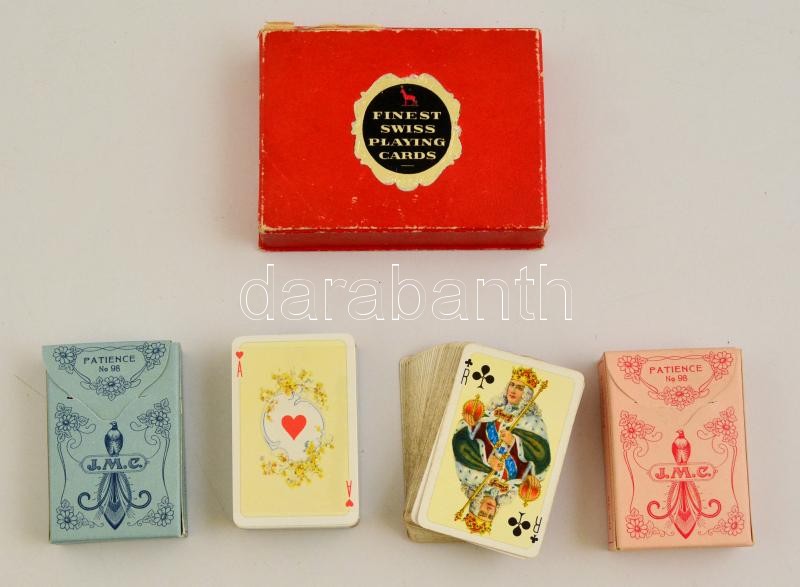 Leírás: 2 pakli francia mini kártya, eredeti dobozában, papír tartóban, jó állapotban