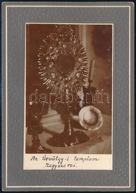 Leírás: 1910 Úrvölgy (ma: Špania Dolina), a templom kegyszerei, fotó, kartonra ragasztva, 15×10,5 cm