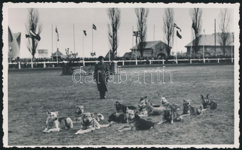 Leírás: 1948 Rendőrkutyák bemutatója. Ferdinkó Béla pecséttel jelzett fotó 9x14 cm