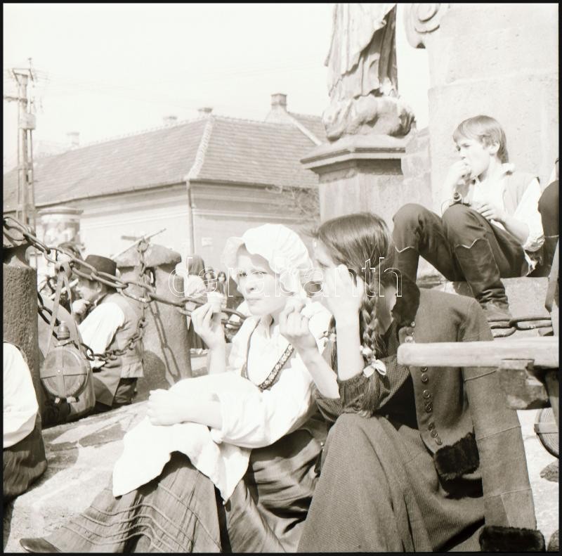 Leírás: 1974 A "Segesvár" című forgatása Vácon, rendezte: Lányi András, 9 db fotónegatív, 6×6 cm