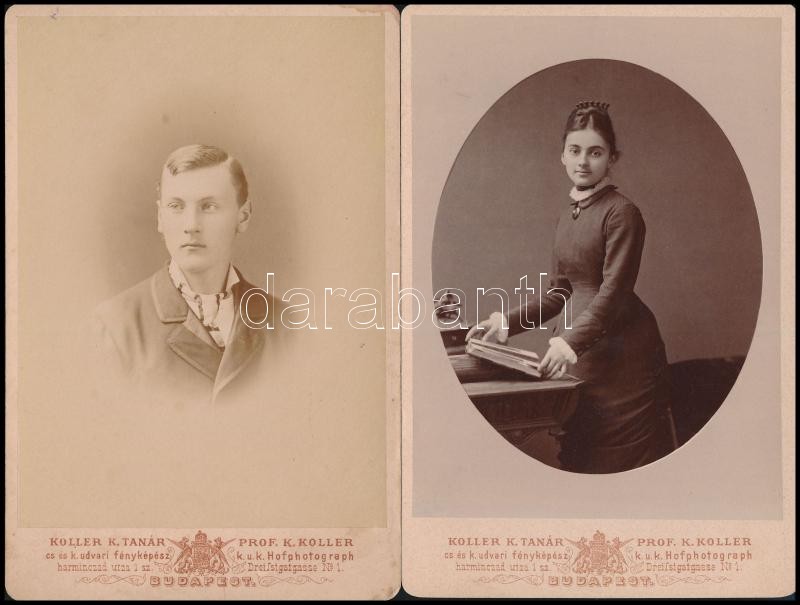 Leírás: cca 1874 Koller Károly pesti műtermében készült, 2 db kabinetfotó, 17x11,5 cm