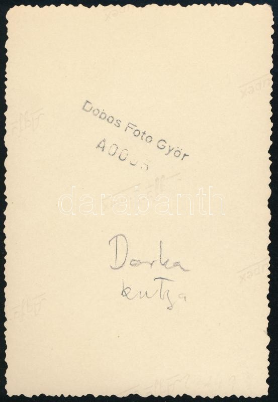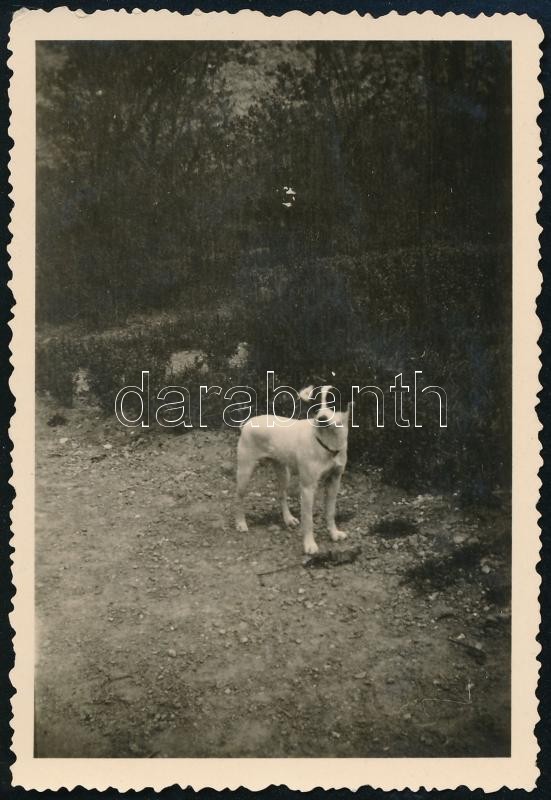 cca 1940 Dorka kutya, Dobos Fotó Győr, pecséttel jelzett, 8,5×5,5 cm https://www.darabanth.com/hu/330-Gyorsarveres/330.0/Festmeny-mutargy-papirregiseg-egyeb/Foto~500019/cca-1940-Dorka-kutya-Dobos-Foto-Gyor-pecsettel-jelzett-8-5C3975-5-cm~II1842850