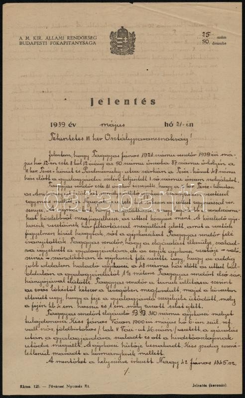 1939 Bp., rendőrségi jelentés rendőr elgázolásáról https://www.darabanth.com/hu/330-Gyorsarveres/330.0/Festmeny-mutargy-papirregiseg-egyeb/Okmanyok~500016/1939-Bp-rendorsegi-jelentes-rendor-elgazolasarol~II1842179