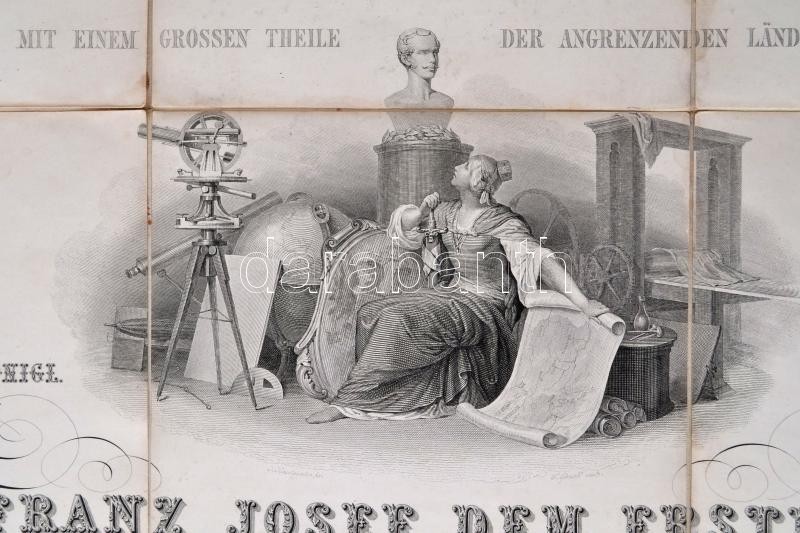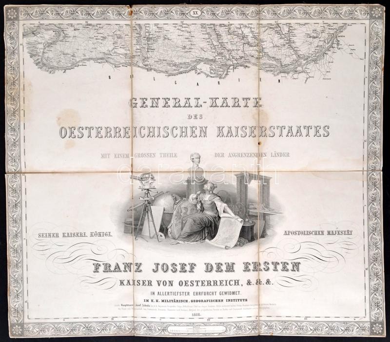 Leírás: General-Karte des Oesterreichischen Kaiserstaates, 1856, K. k. militärisch-geografische Institute. Díszes térképcímlap, vászonra kasírozva, 50×56,5 cm