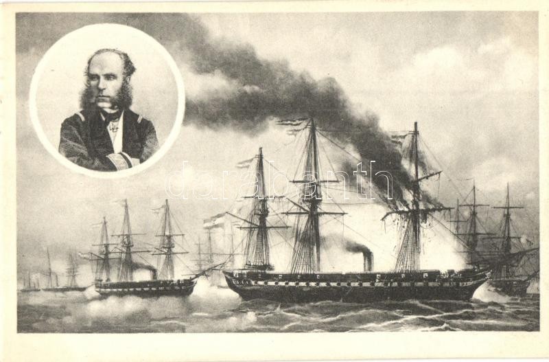 Leírás: Seetreffen bei Helgoland 9. Mai 1864. Das Gablenz-Denkmalkomittee / Wilhelm von Tegetthoff won the battle with SMS Schwarzenberg, Radetzky and Seehund