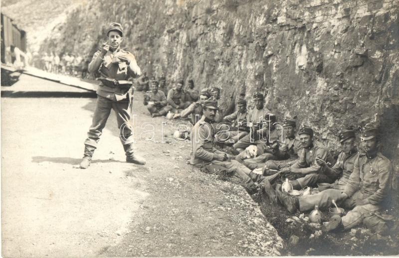 Leírás: 1918 5/7. Utász század kosztol / WWI K.u.k. 5/7. Pionierkompagnie, soldiers eating. photo