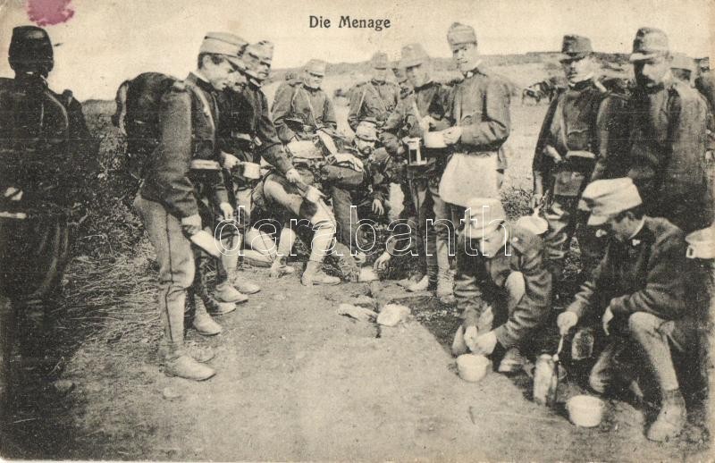 Die Menage / Osztrák-magyar katonák étkezés közben / WWI Austro-Hungar... https://www.darabanth.com/hu/330-Gyorsarveres/330.0/Kepeslapok/Katonai~2000059/Die-Menage-Osztrak-magyar-katonak-etkezes-kozben-WWI-Austro-Hungarian-KuK-soldiers-eatin~II1842724