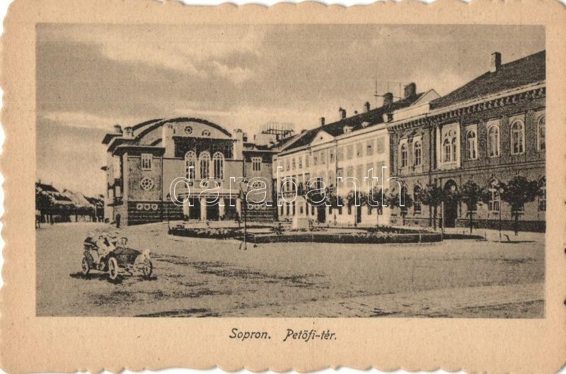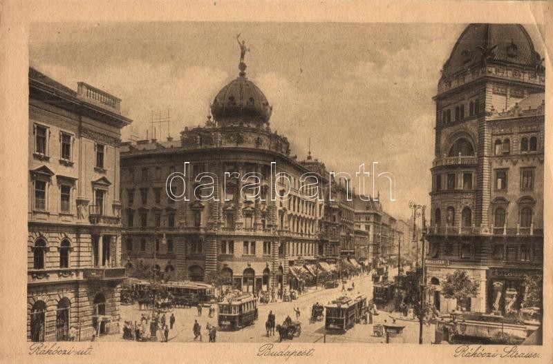2 db régi magyar városképes lap: Sopron (Petőfi tér automobillal), Budapest (Rákóczi út villamossal) / 2 pre-1945 Hungarian town-view postcards: Sopron, Budapest