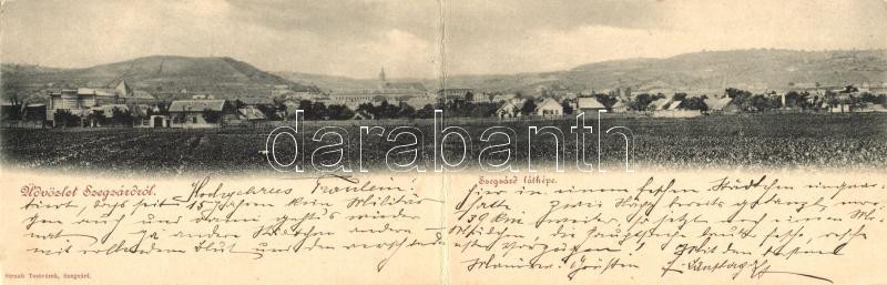 Leírás: 1901 Szekszárd, Panorámalap a zsinagógával. Straub testvérek kiadása / panoramacard