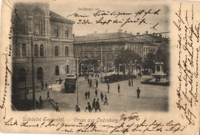 1902 Sopron, Oedenburg; Széchenyi tér, villamos. Kummert L. (EK) https://www.darabanth.com/hu/330-Gyorsarveres/330.0/Kepeslapok/Magyarorszag~2000004/1902-Sopron-Oedenburg-Szechenyi-ter-villamos-Kummert-L-EK~II1575039