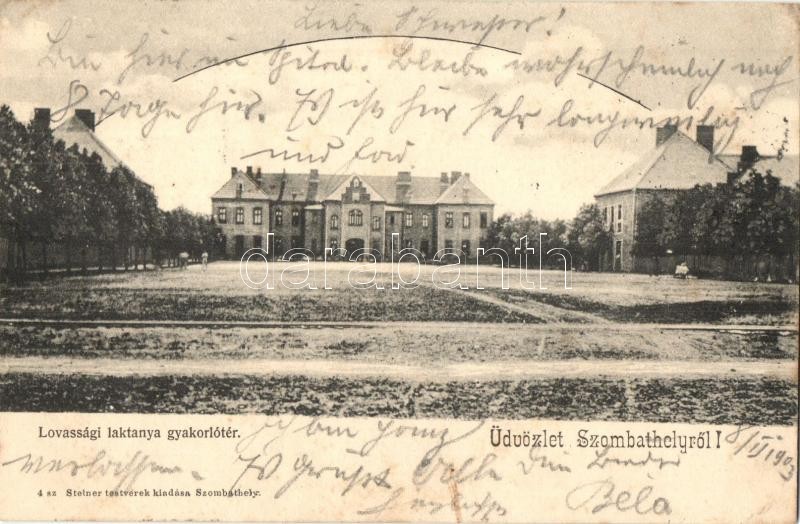 Leírás: 1903 Szombathely, Lovassági laktanya gyakorlótér. Steiner testvérek kiadása (EK)