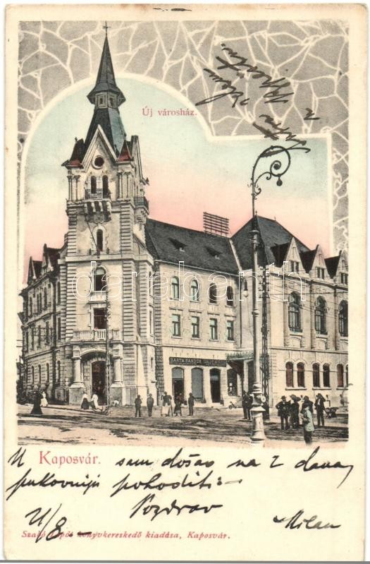 Leírás: 1905 Kaposvár, Új Városháza, Barta Sándor, Vajda üzlete. Kiadja Szabó Lipót (apró sarokhiány / tiny corner shortage)