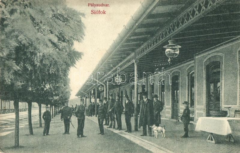Leírás: 1909 Siófok, pályaudvar, vasútállomás, külső várótermi rész, kiadja Weisz Lipót (Rb)