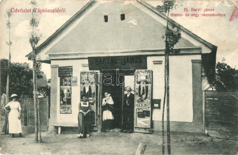 1919 Tápiószele, Ifj. Bartal János fűszer és vegyeskereskedés üzlete (... https://www.darabanth.com/hu/330-Gyorsarveres/330.0/Kepeslapok/Magyarorszag~2000004/1919-Tapioszele-Ifj-Bartal-Janos-fuszer-es-vegyeskereskedes-uzlete-feluleti-serules-~II1574945