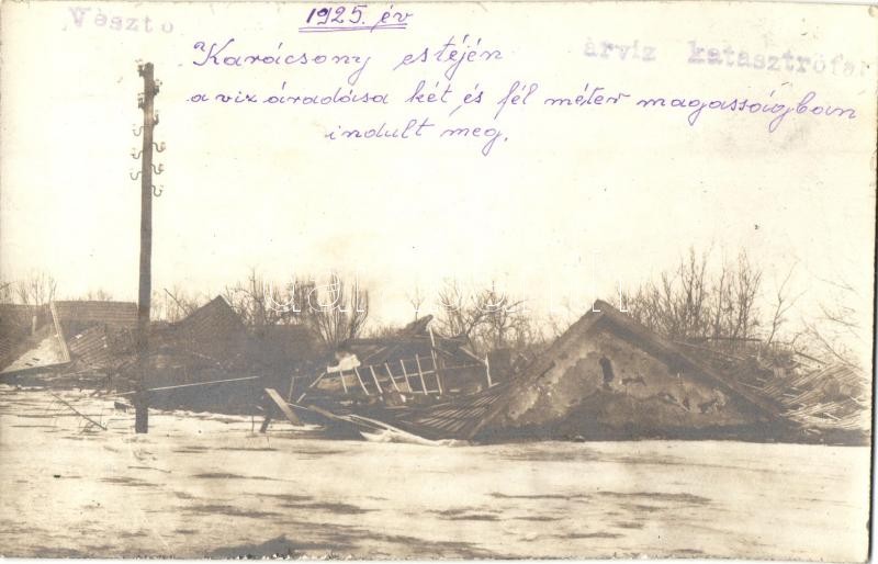 Leírás: 1925 Vésztő, Karácsony estéjén a víz áradása két és fél méter magasságban indult meg, árvíz katasztrófa, elárasztott ház romjai. photo