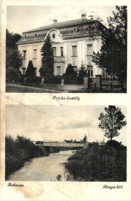 Babócsa, Prinke-kastély, Rinya-híd https://www.darabanth.com/hu/330-Gyorsarveres/330.0/Kepeslapok/Magyarorszag~2000004/Babocsa-Prinke-kastely-Rinya-hid~II1841199