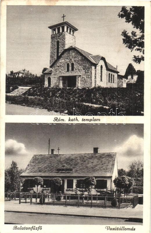 Leírás: Balatonfűzfő, Római katolikus templom, Vasútállomás