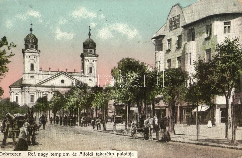 Debrecen, Református nagy templom, Alföldi takarékpénztár palotája (ko... https://www.darabanth.com/hu/330-Gyorsarveres/330.0/Kepeslapok/Magyarorszag~2000004/Debrecen-Reformatus-nagy-templom-Alfoldi-takarekpenztar-palotaja-kopott-sarok-worn-corner~II1842019