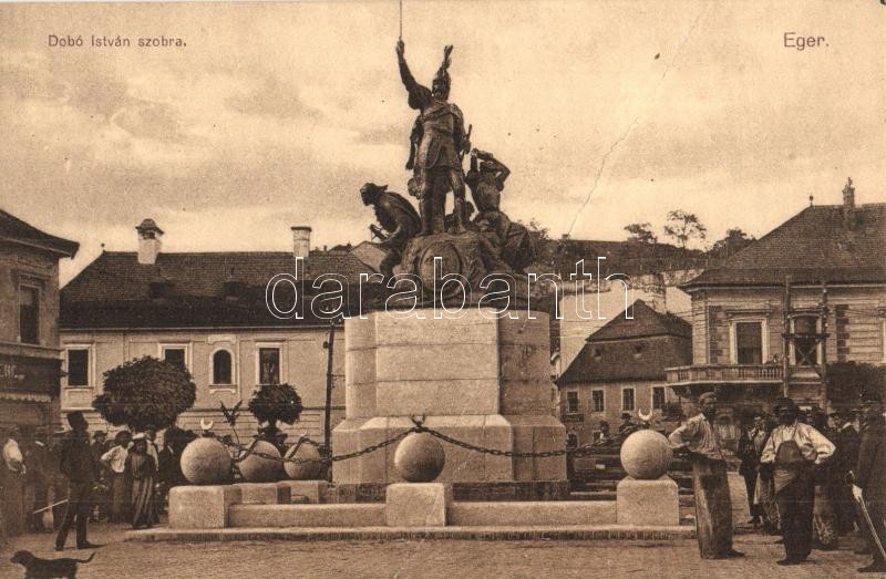 Eger, Dobó István szobra, özv. Wahl Adolfné kiadása (fa) https://www.darabanth.com/hu/330-Gyorsarveres/330.0/Kepeslapok/Magyarorszag~2000004/Eger-Dobo-Istvan-szobra-ozv-Wahl-Adolfne-kiadasa-fa~II1841844