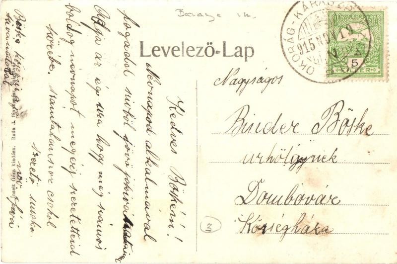 Leírás: Kárász, Ínselt Géza korcsmája, kocsma, üzlet. Ínselt Géza saját kiadása + 1915 Okorág-Kárászpuszta vonat pecsét (EK)