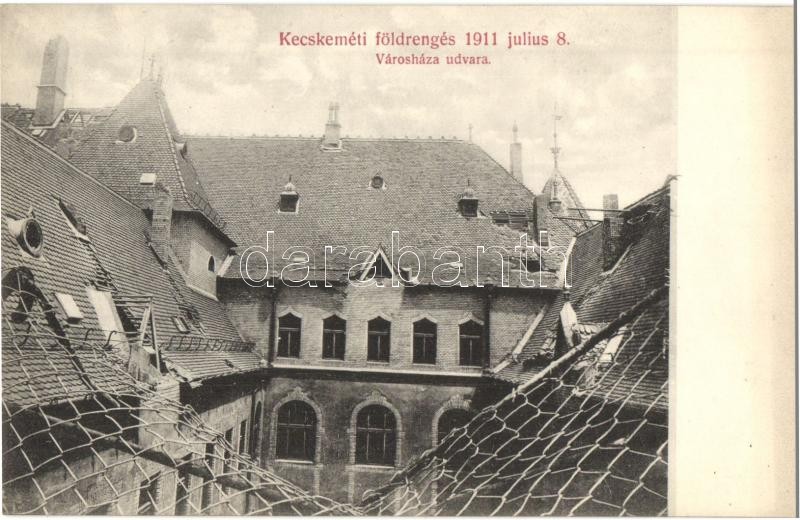 Kecskemét, a kecskeméti városháza az 1911. július 8-ai földrengés után... https://www.darabanth.com/hu/330-Gyorsarveres/330.0/Kepeslapok/Magyarorszag~2000004/Kecskemet-a-kecskemeti-varoshaza-az-1911-julius-8-ai-foldrenges-utan-udvar-Fanto-fenyk~II1840874