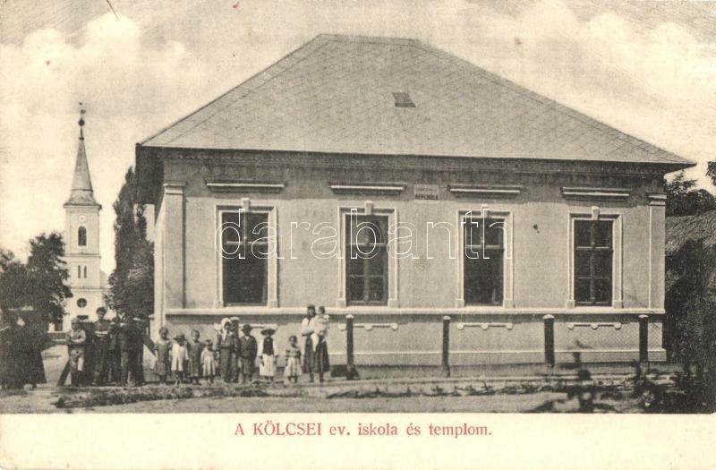 Kölcse, Evangélikus iskola és templom, gyerekek (EK) https://www.darabanth.com/hu/330-Gyorsarveres/330.0/Kepeslapok/Magyarorszag~2000004/Kolcse-Evangelikus-iskola-es-templom-gyerekek-EK~II1843222