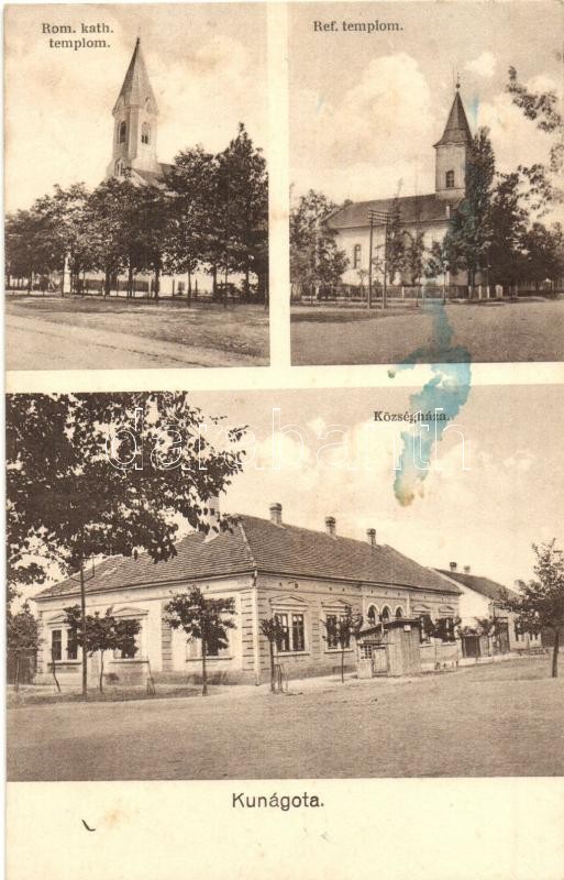 Leírás: Kunágota, Római katolikus templom, Református templom, Községháza (fl)
