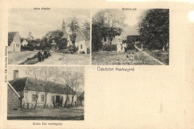 Leírás: Padrag (Padragkút, ma Ajka része), utcakép, Református templom, Erdész lak, Kohn Pál vendéglője, étterem. Kohn Pál saját kiadása