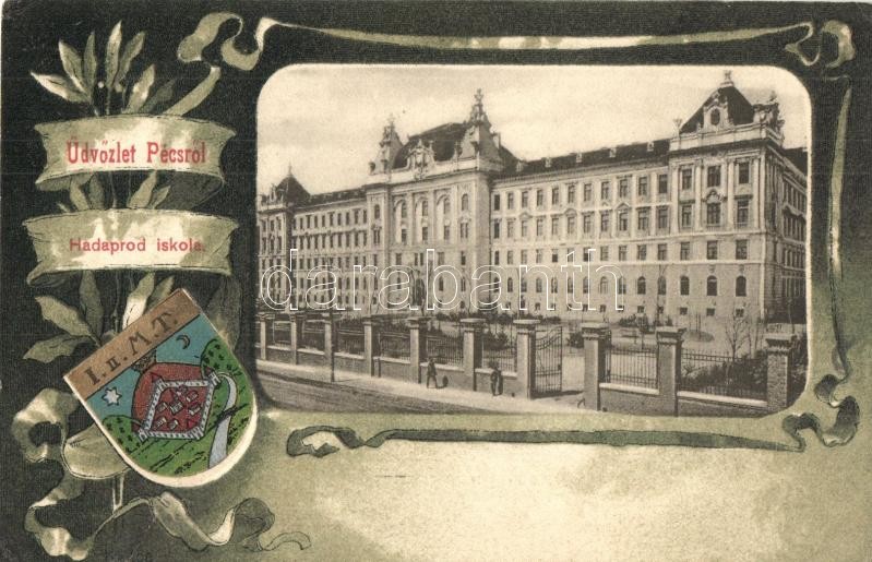 Pécs, Hadapród iskola. Kiadja Domján I. Címeres litho keret (r) https://www.darabanth.com/hu/330-Gyorsarveres/330.0/Kepeslapok/Magyarorszag~2000004/Pecs-Hadaprod-iskola-Kiadja-Domjan-I-Cimeres-litho-keret-r~II1840752