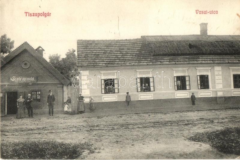 Leírás: Polgár, Tiszapolgár; Vasút utca, Szabó nyomda üzlete és saját kiadása (EK)
