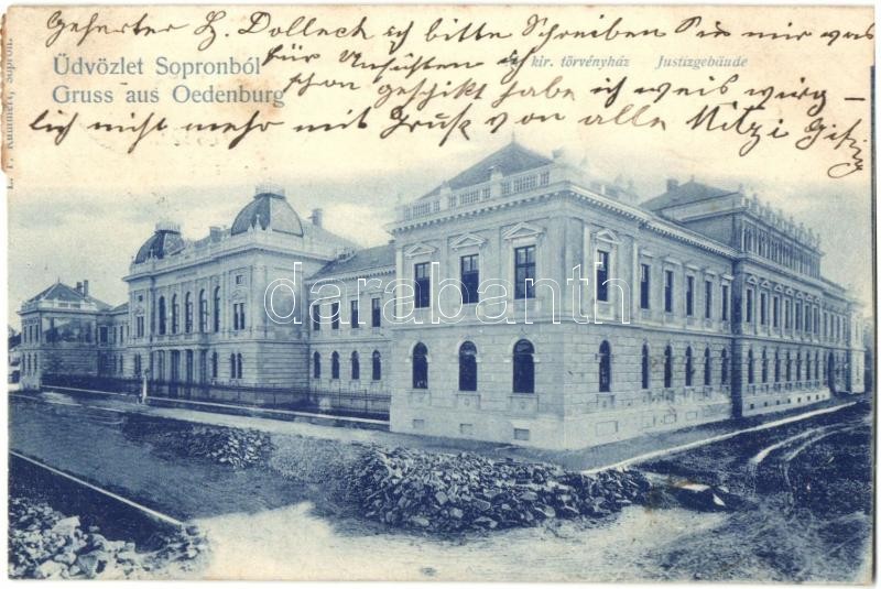 Sopron, Oedenburg; M. kir. törvényház. Kiadja L. F. Kummert https://www.darabanth.com/hu/330-Gyorsarveres/330.0/Kepeslapok/Magyarorszag~2000004/Sopron-Oedenburg-M-kir-torvenyhaz-Kiadja-L-F-Kummert~II1842035