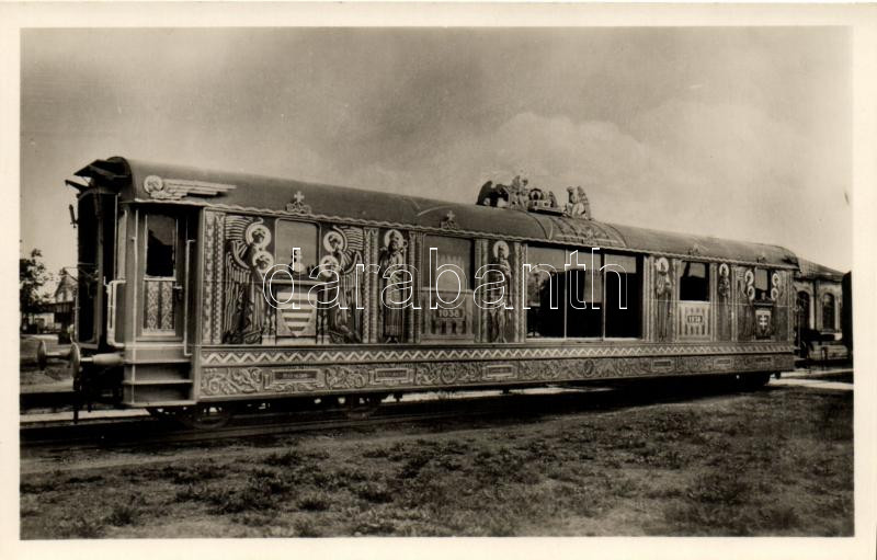 Leírás: Szent István jobbját vivő aranyvonat, Szent István Jubileumi Év (1038-1938)