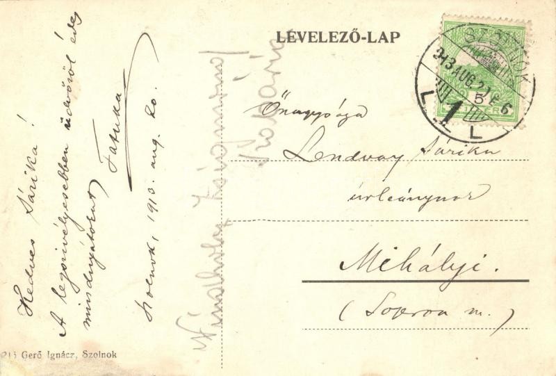 Leírás: Szolnok, Városháza, utcakép, Sebők Nándor és Konsitzky György üzlete. Gerő Ignác kiadása