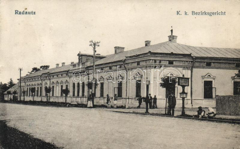Leírás: Radauti, Radóc; K.k. Bezirksgericht / district court (fa)