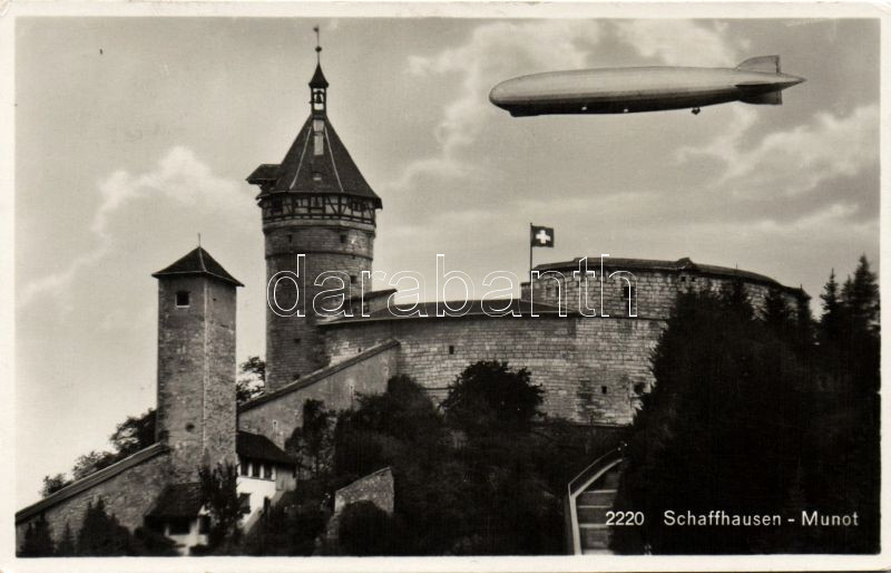 Schaffhausen, Munot, Zeppelin https://www.darabanth.com/hu/330-Gyorsarveres/330.0/Kepeslapok/Svajc~2000038/Schaffhausen-Munot-Zeppelin~II244949