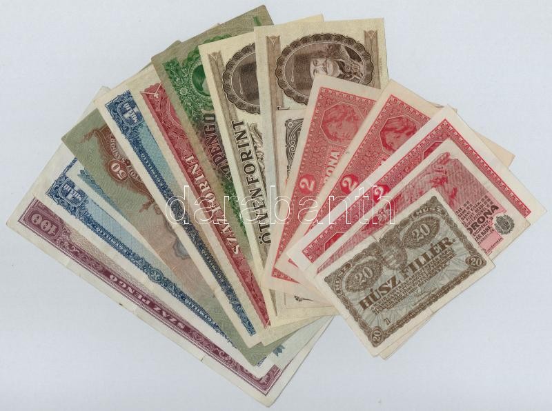 Leírás: 15db-os vegyes magyar korona, pengő és forint bankjegy tétel T:vegyes