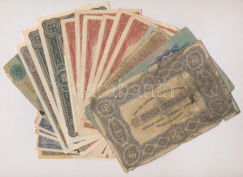 Leírás: 1913-1923. 31db-os vegyes magyar korona bankjegy tétel, közte 1920. 10K (2x) sorszámkövetők T:I,III,III-