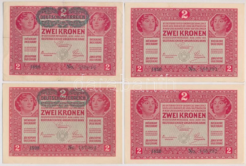 1917. 2K (4x) közte 2db sorszámkövető felülbélyegzés nélkül, és 2db &q... https://www.darabanth.com/hu/330-Gyorsarveres/330.0/Numizmatika/Magyar-bankjegyek~1000006/1917-2K-4x-kozte-2db-sorszamkoveto-felulbelyegzes-nelkul-es-2db-Deutschosterreich-f~II1844553