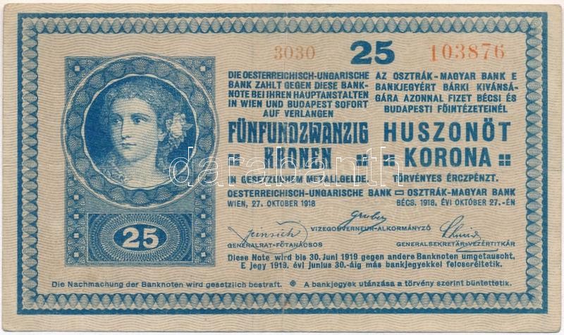 Leírás: 1918. 25K "3030" eltérő méretű sorozat- és sorszám, sima hátlappal T:III