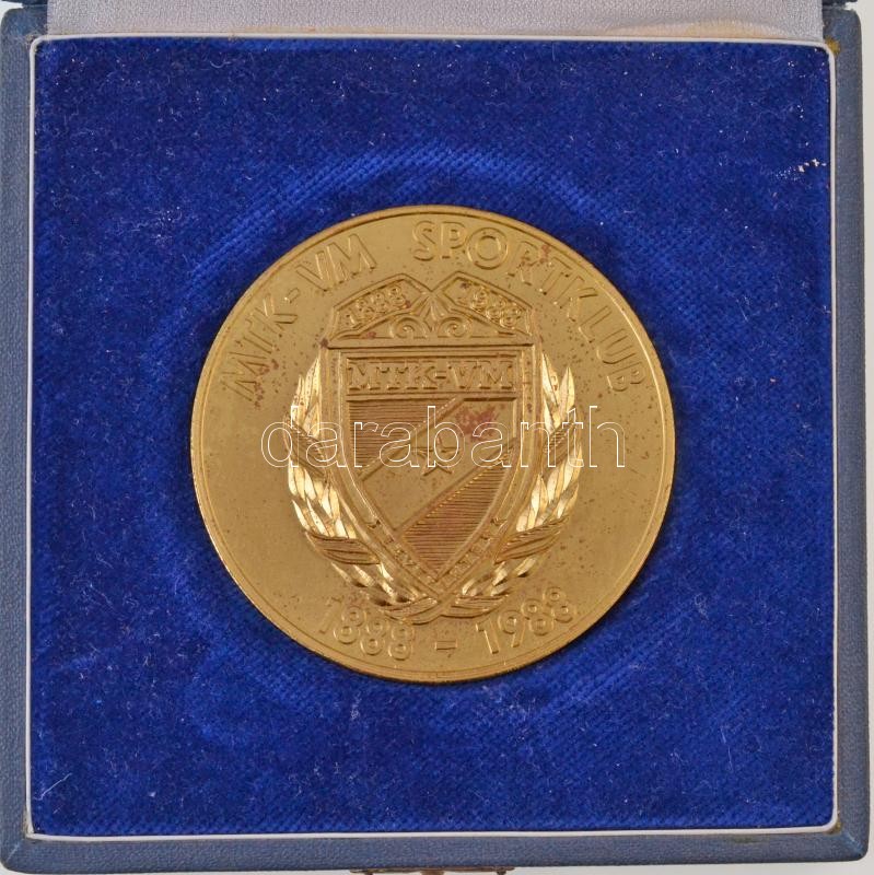 Leírás: 1988. "MTK-VM Sportklub 100 éves" nagyalakú aranyozott fém emlékérem dísztokban (70mm) T:2