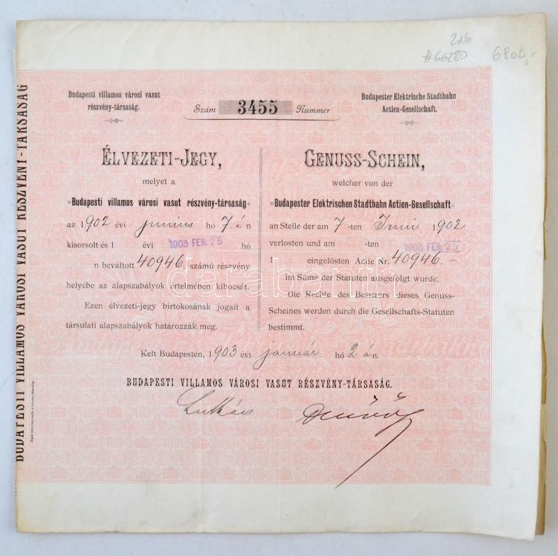 Budapest 1903. "Budapesti villamos városi vasút részvény-társaság... https://www.darabanth.com/hu/330-Gyorsarveres/330.0/Numizmatika/Reszvenyek-es-sorsjegyek~1000004/Budapest-1903-Budapesti-villamos-varosi-vasut-reszveny-tarsasag-elvezeti-jegye-hozza-te~II1844671