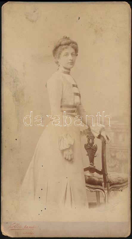 1901 Hegedüs Rózsa, Hegedüs Sándor politikus és Jókai Jolán lányának, ifj. Hegedüs Sándor író és Hegedüs Loránt politikus húgának keményhátú fotója, Bp. Koller Károly műterméből, kissé foltos, kissé kopott , 21x11 cm