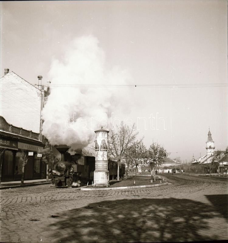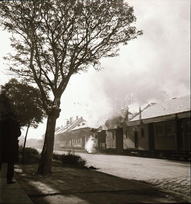Leírás: 1955 Orosháza, kisvonat a városban, Kotnyek Antal (1921-1990) budapesti fotóriporter hagyatékából 2 db vintage negatív, 6x6 cm