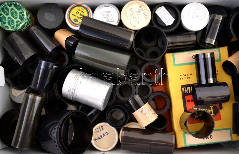 Leírás: Cipősdoboznyi fotónegatív, fekete-fehér és színes, városok, utazások, események, üvegnegatív, tekercsek
